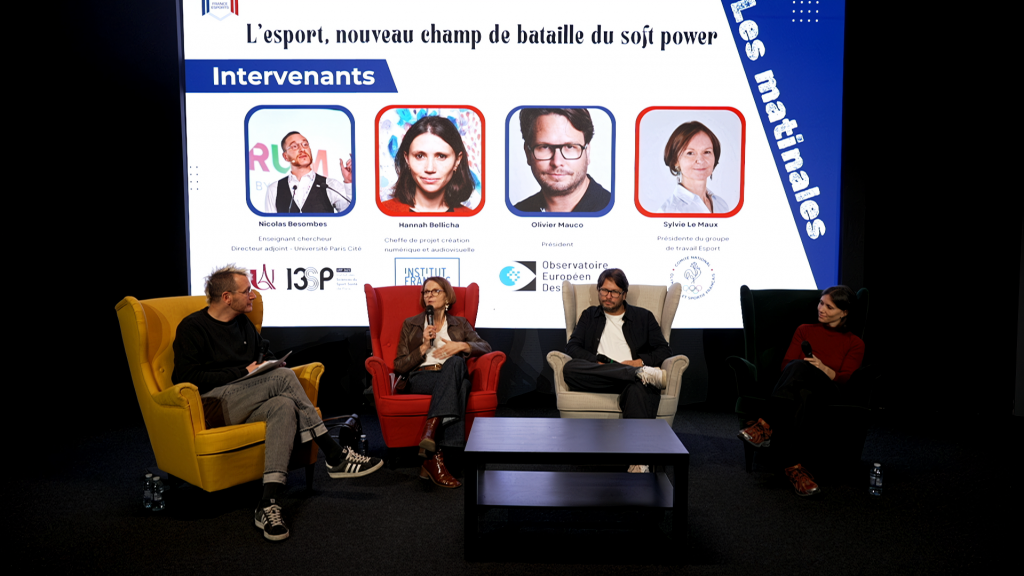 Olivier Mauco, président de l’Observatoire Européen des Jeux vidéo était présent aux côtés de Hannah Bellicha de l’Institut Français, et Sylvie Le Maux, présidente du groupe de travail e-sport au comité national olympique pour une table ronde animé par Nicolas Besombes, directeur adjoint de l’université Paris Cité et administrateur France Esport.